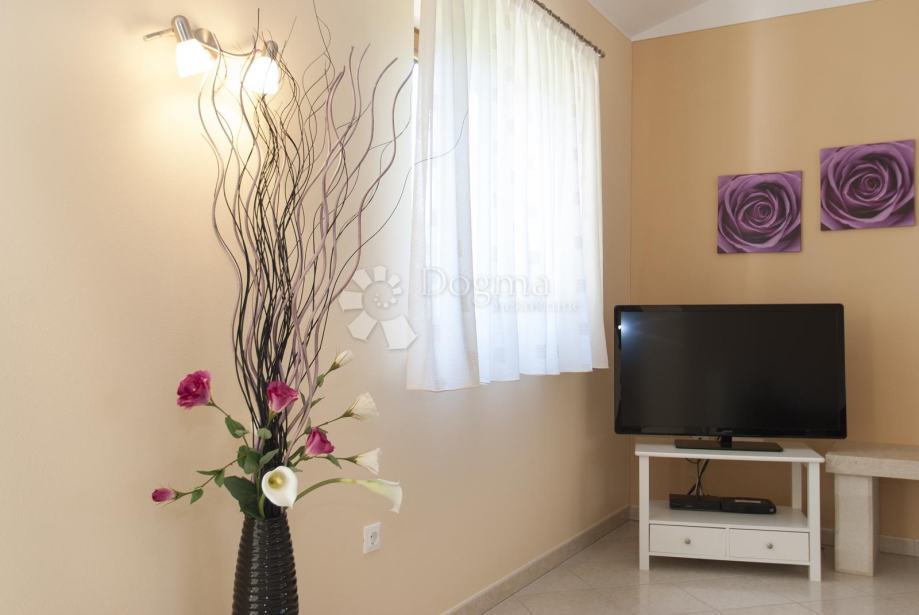 U prizemlju se nalazi prostrani dnevni boravak s izlazom na terasu, a odmah pored je kuhinja, koja nudi udoban prostor za obiteljska okupljanja. Sa lijeve strane prizemlja smještena je jedna spavaća soba te kupaonica.
