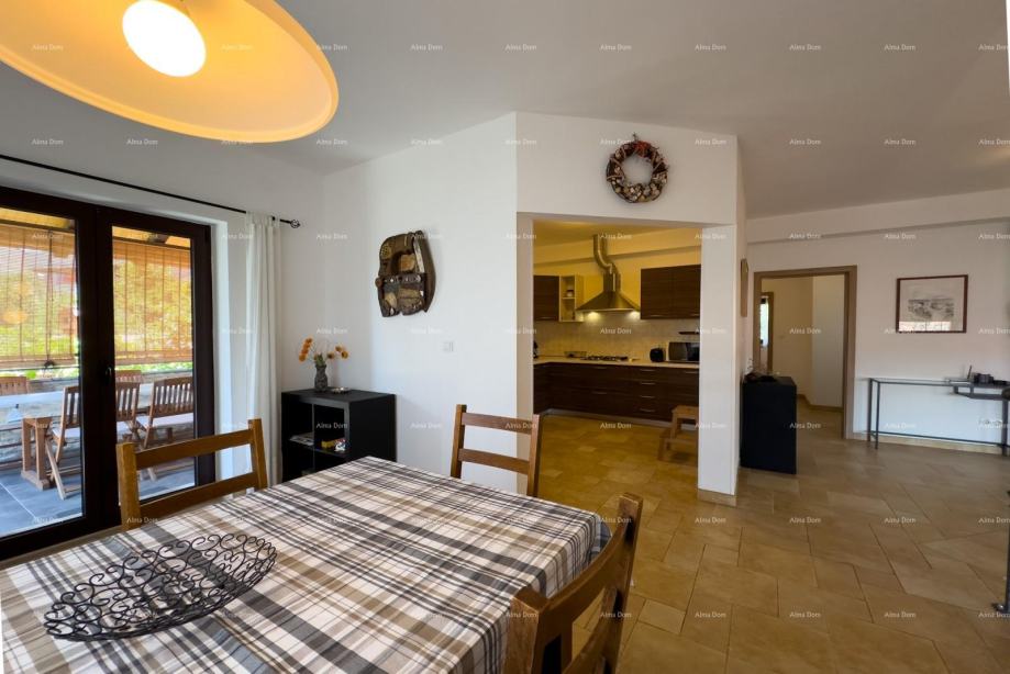 Ova prekrasna kuća u Puli nudi savršenu kombinaciju udobnosti i stila. S površinom od 200 m², smještena na prostranoj parceli od 1055 m², idealna je za veliku obitelj ili kao investicija. Kuća se sastoji od dva odvojena stana, svaki s vlastitim dnevnim boravkom, kuhinjom i terasama. Uživajte u opuštanju uz bazen okružen zrelim borovima. Opremljena svim pogodnostima, uključujući dva WC-a i klima uređaj. Udaljena 3000 m od centra i 1900 m od mora, pruža savršenu ravnotežu privatnosti i blizine svih sadržaja.