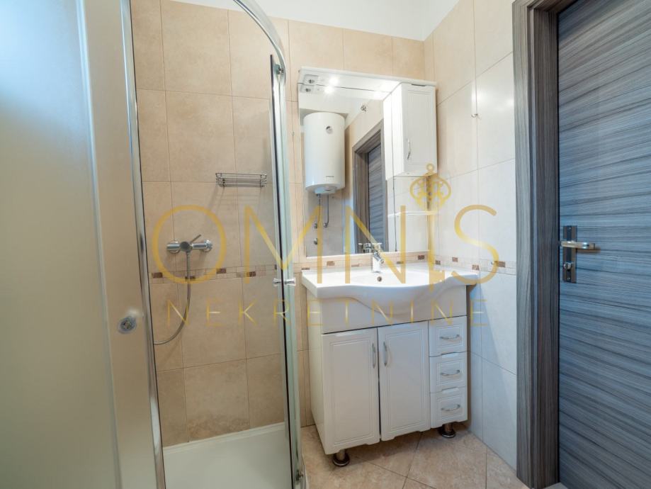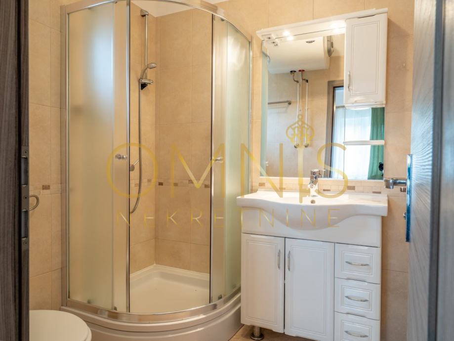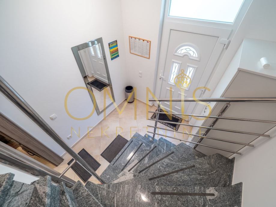 Kuća je u naravi podijeljena na dva potpuno funkcionalna apartmana, uz zajednički dio koji obuhvaća stepenište i ostave, te dva pripadajuća parkirna mjesta.