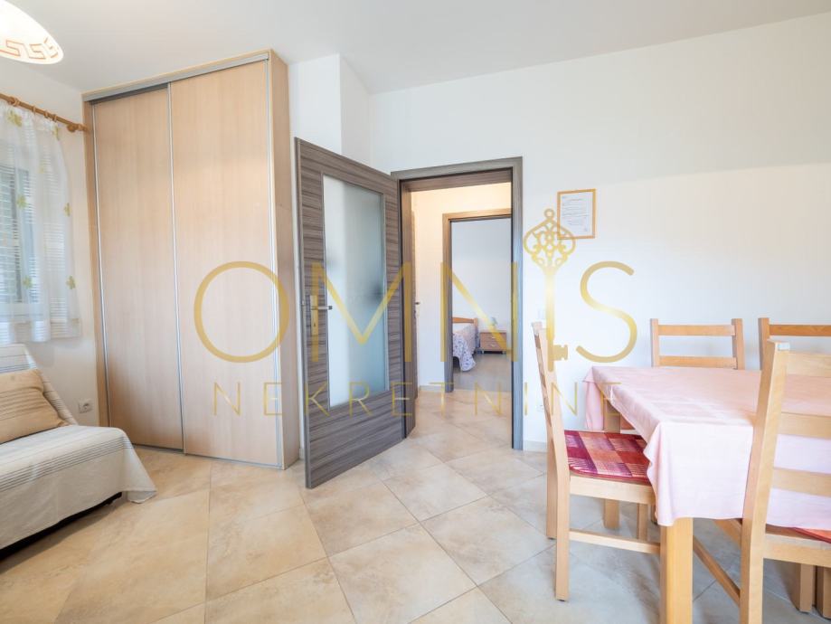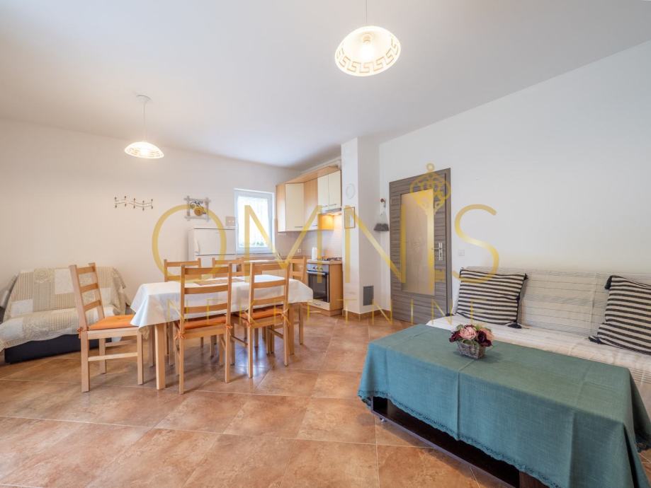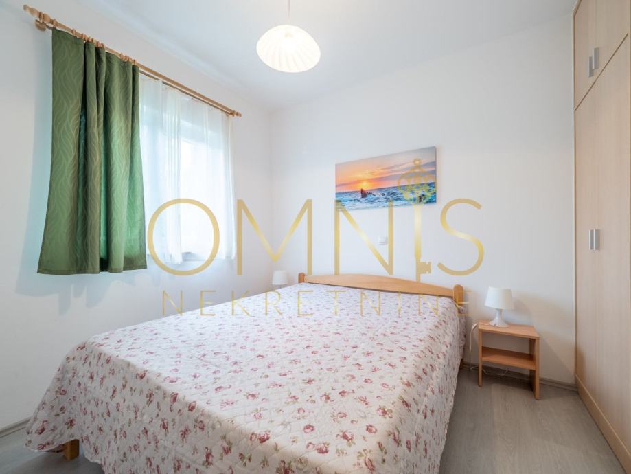 Kuća raspolaže s dvije spavaće sobe, a svijetli i prostrani prostori stvaraju ugodnu atmosferu tijekom cijele godine.