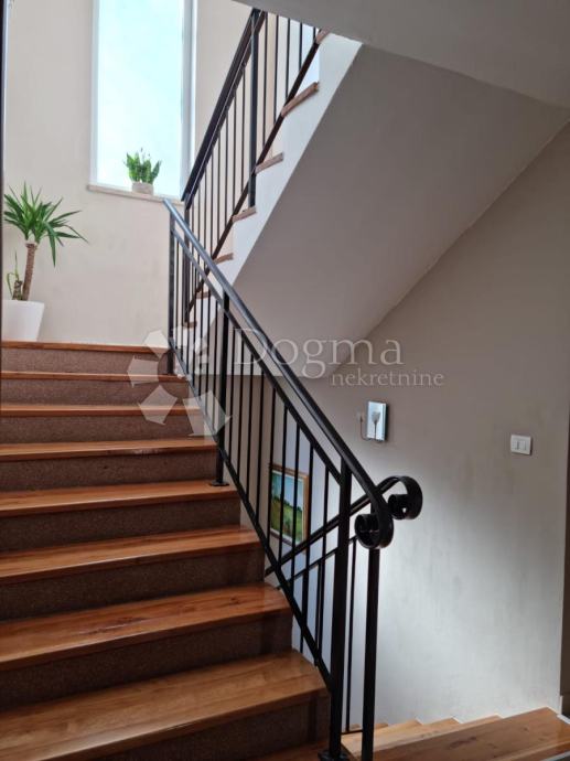 U prizemlju kuće nalazi se prostrano predsoblje, kuhinja, velika blagovaonica s izlazom na veliku loggiu, dnevni boravak, spavaća soba i kupaonica.