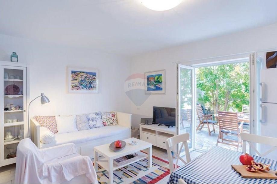 Kuca ima 3 klima uređaja u obje spavaće sobe te u kuhinji s blagovaonicom. Kuća je iznimno kvalitetne gradnje, a kompletno je renovirana i namještena 2013. godine, uključujući PVC stolariju i novo krovište. Terasu krasi kvalitetna drvena vrtna garnitura. U vrtu se nalazi maleno kameno spremiste površine 4,38m2 te ima poseban ulaz iz mirne ulice.