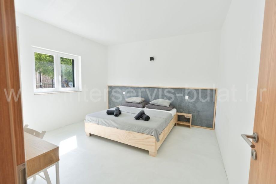 Druga kuća se sastoji od 2 stana (dvosoban i jednosoban) sa po 50m2 stambene površine. U prizemlju je dvosoban stan s lijepom terasom, a na katu jednosoban stan s dva balkona.
