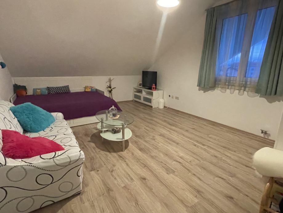 - Potkrovlje: veliki dnevni boravak s blagovaonicom i kuhinjom, te tri sobe, kupaona, wc, i dva balkona. Površina 139,85m2