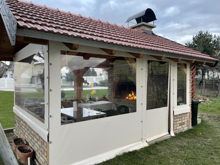 Kuća ima alarm sustav, centralno plinsko grijanje, grijanje na drvo (kamin), klima uređaj, otvaranje garaže na daljinski, te ispred garaže dva dodatna parking mjesta. vrt, te pečenjaru u dvorištu.