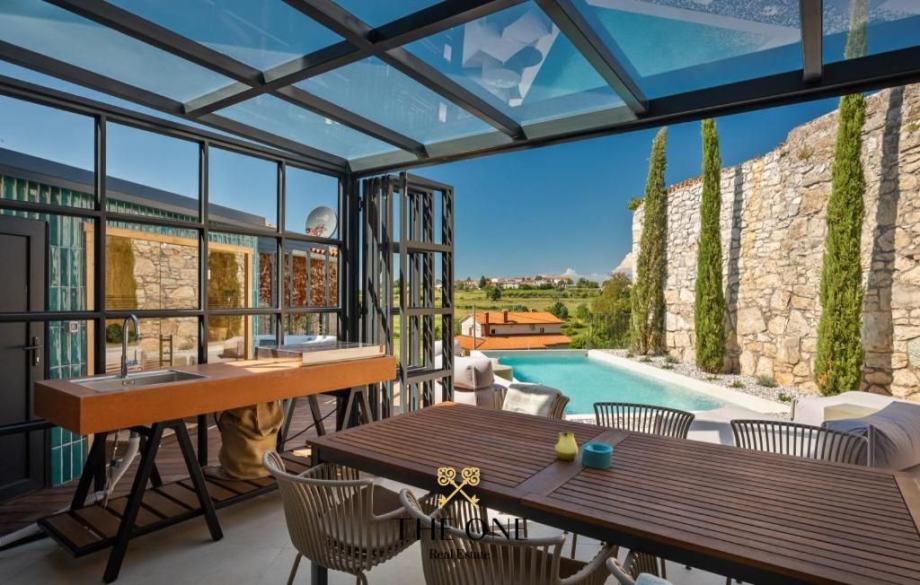 Ova kuća pruža mirno utočište daleko od gradske vreve – savršenu kombinaciju rustikalne istarske autentičnosti, suvremenog luksuza, panoramskog pogleda na krajolik i vrhunske udobnosti.