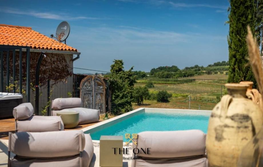 Elegantno uređena kuća spaja bezvremenski šarm s modernom udobnošću. Smještena u mirnom zaseoku u blizini Vižinade, u slikovitom istarskom zaleđu, nekretnina nudi idealno utočište za one koji traže privatnost, opuštanje i autentičan mediteranski način života.