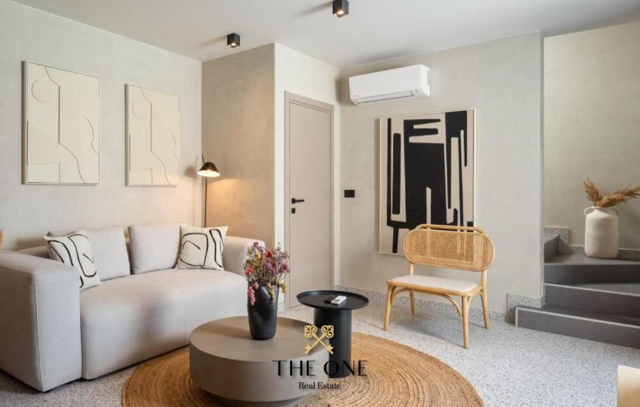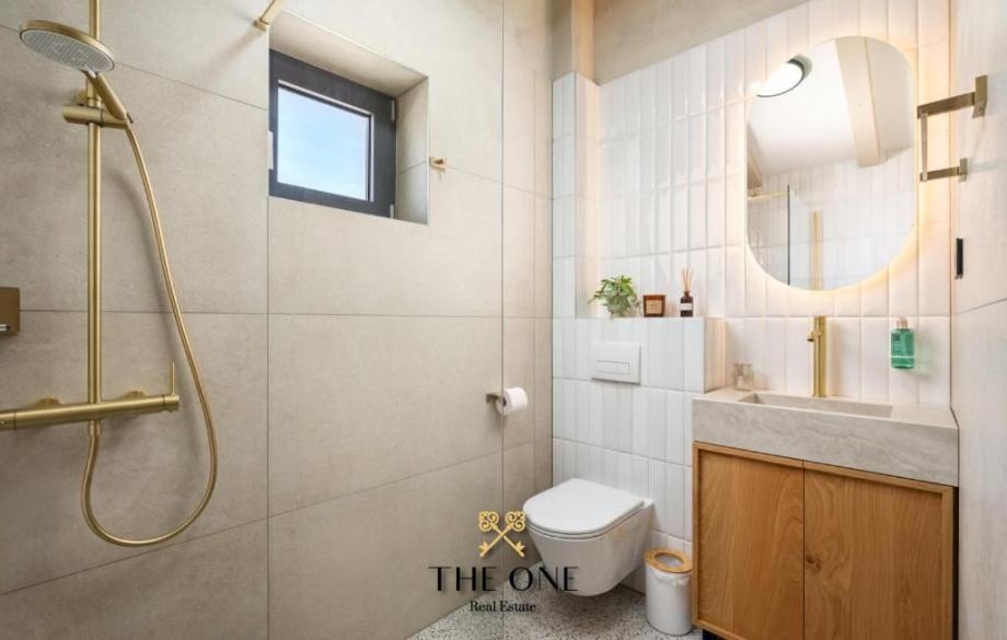 Kuća se prostire na 110 m² elegantnog interijera na ograđenoj parceli od 200 m², te nudi 2 spavaće sobe i 3 kupaonice.