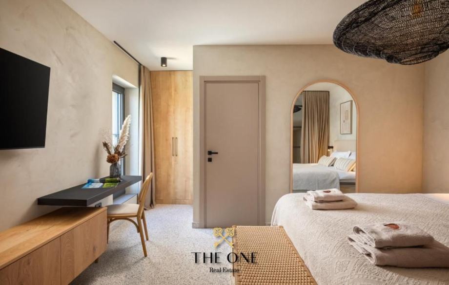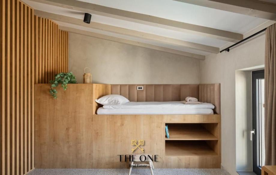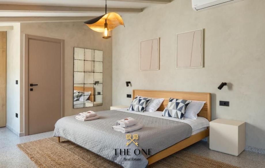 Na gornjim etažama smještene su dvije elegantne spavaće sobe s vlastitim kupaonicama. Prva spavaća soba ima veliki bračni krevet, dok druga raspolaže s bračnim i single krevetom. Svaka soba pruža miran pogled na okolno zelenilo te je opremljena klima uređajem, televizorom i modernom kupaonicom s tuš kabinom. U prizemlju se nalazi i dodatni gostinjski toalet.