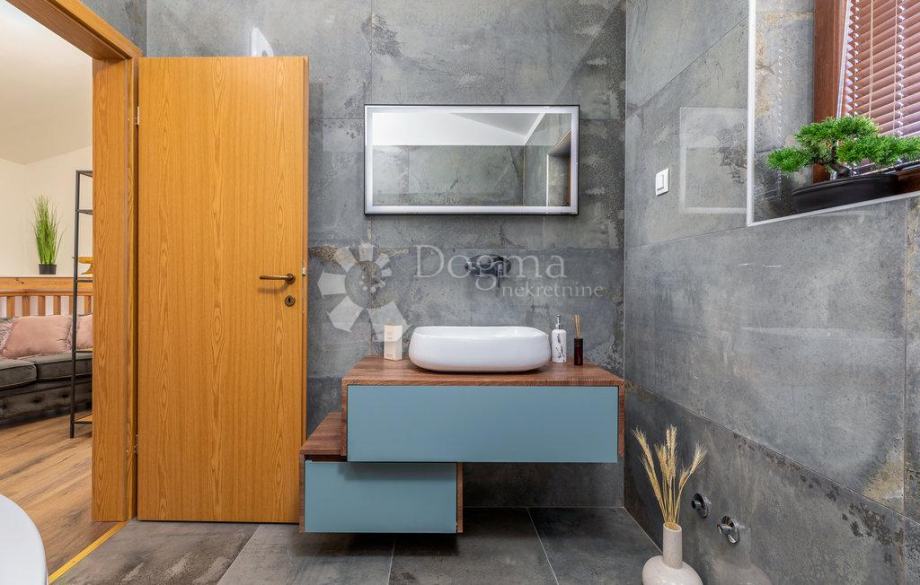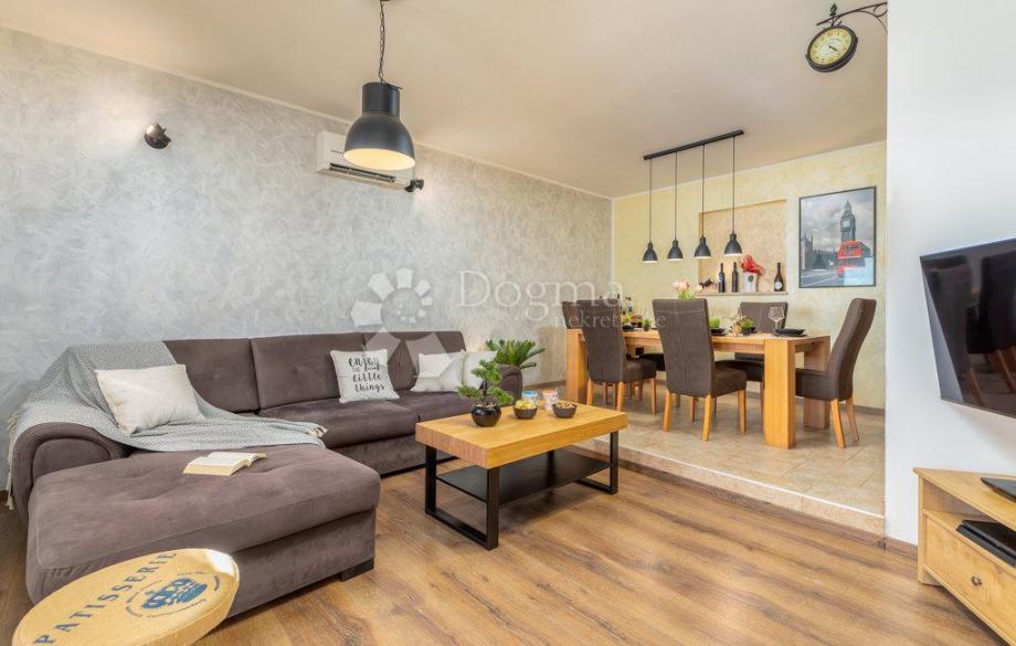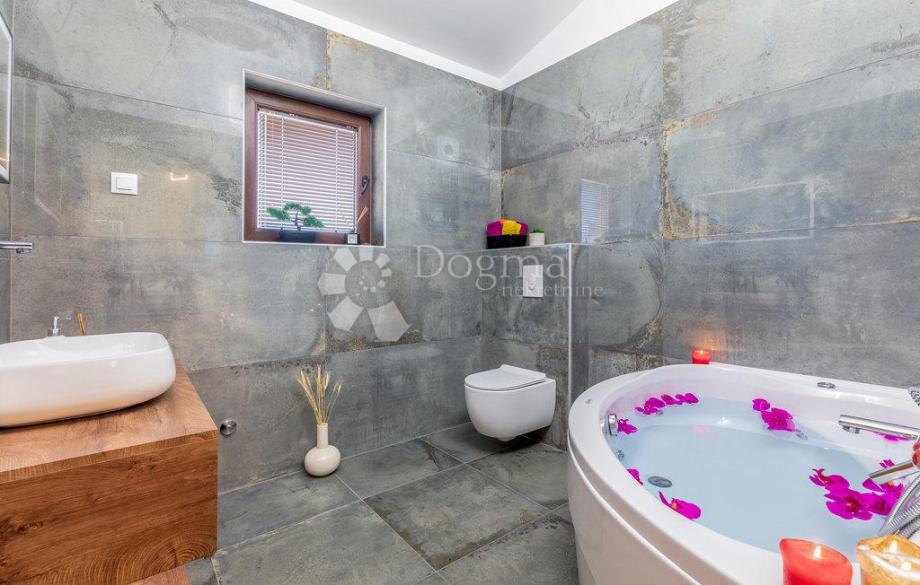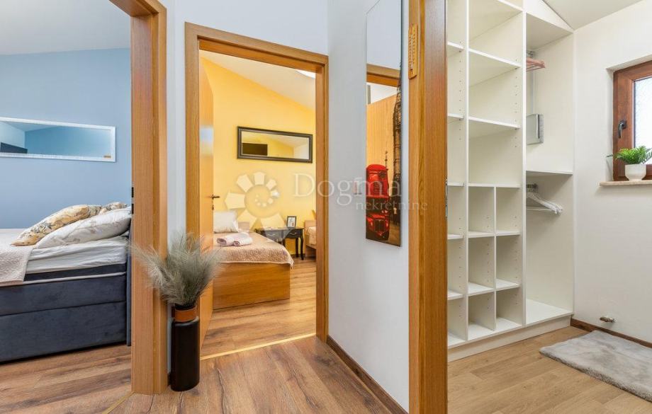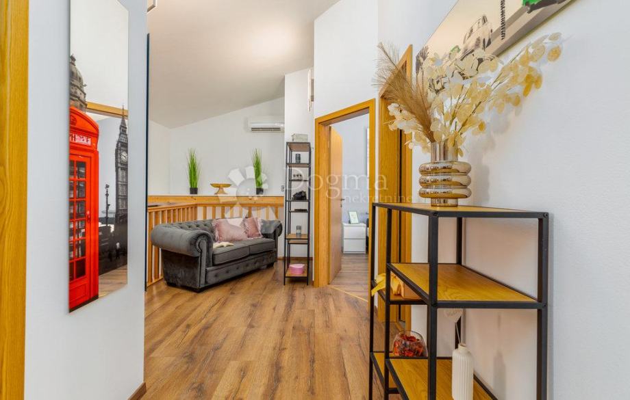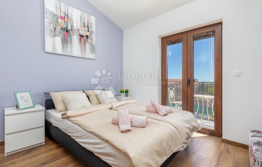 Nedaleko od centra grada i mora smjestila se ova prekrasna kuća na zemljištu od 409 m2 sa stambenom površinom od 140 m2, raspoređenom na prizemlju i prvom katu. Na prizemlju nalazi se hodnik, dnevni boravak, kuhinja, blagovaonica te kupaonica, dok se na prvom katu nalazi hodnik, tri spavaće sobe te kupaonica.