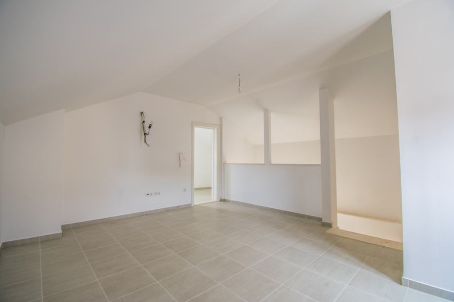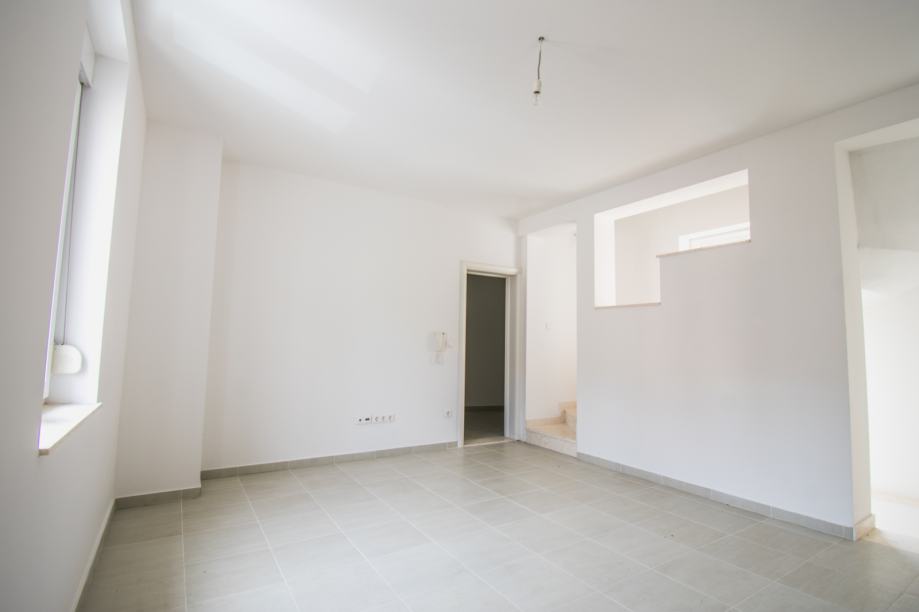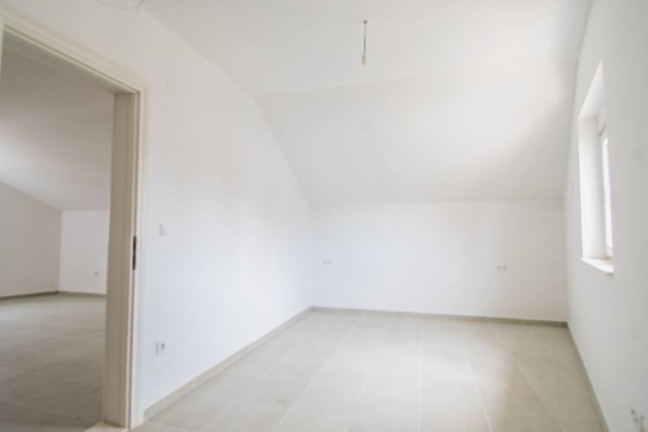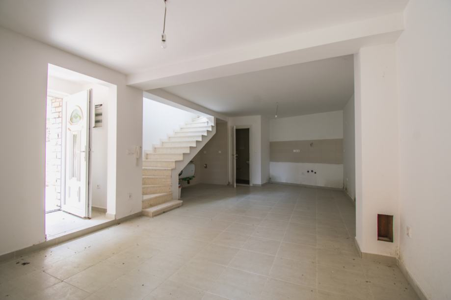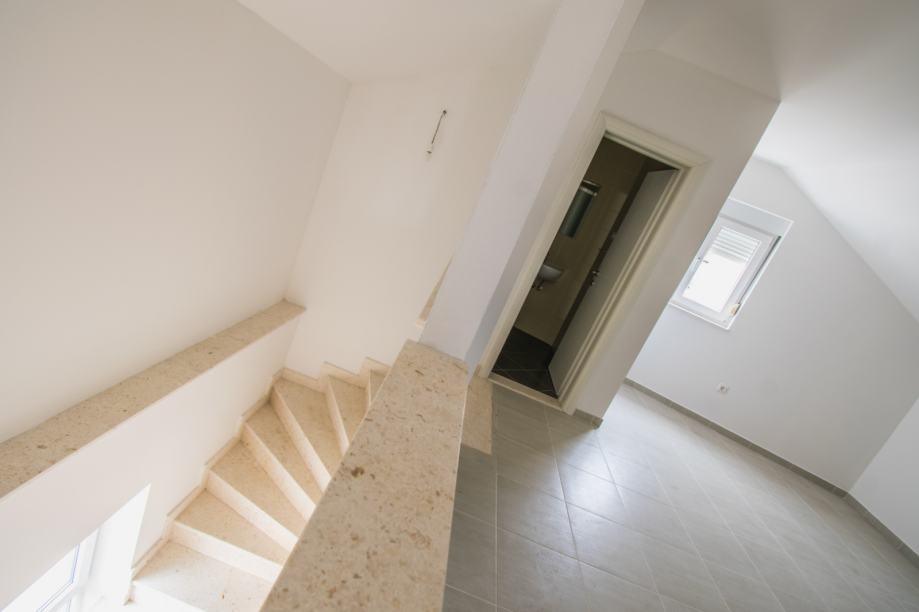 Unutarnje stepenice vode na prvi kat gdje se nalazi dnevni boravak, wc i kupaona, spavaća soba s izlazom na balkon i na trećoj etaži nalazi se kupaona, spavaća soba, te otvoreni prostor s mogućnošću prenamjene u dodatnu spavaću sobu, radnu sobu, dječiji kutak za igru...