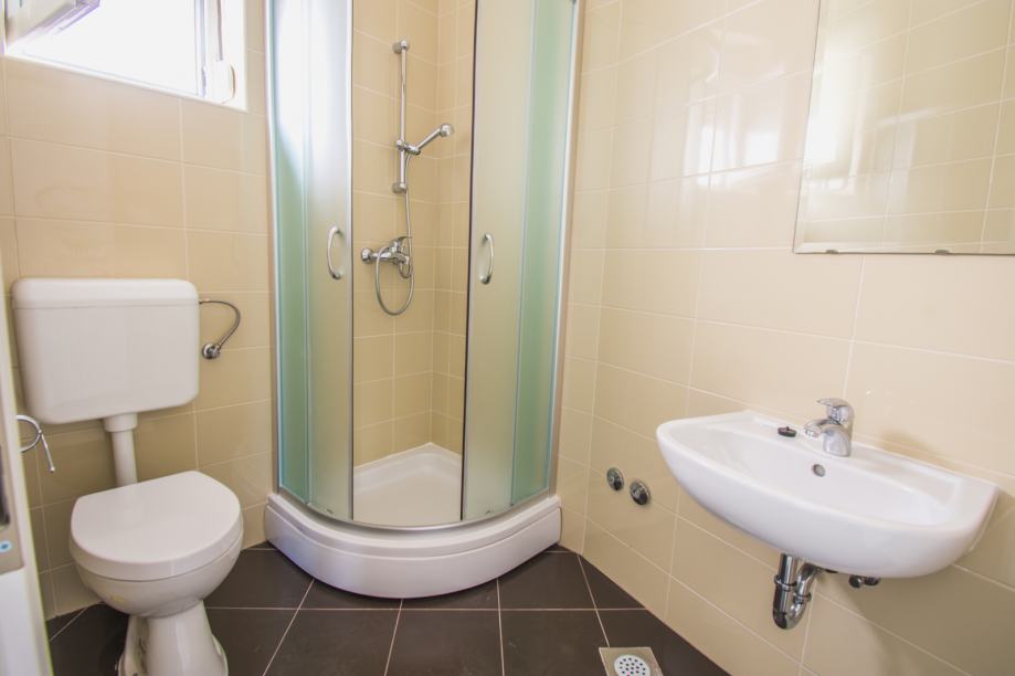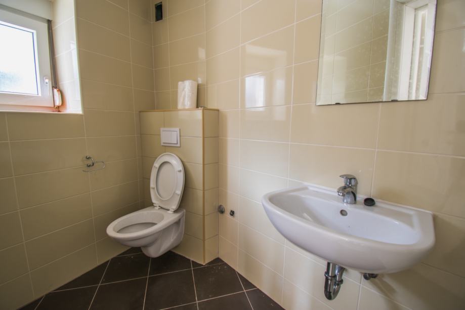 U prizemlju se nalazi kuhinja s blagovaonicom, wc, prostor za skladištenje, izlaz na terasu i u dvorište.