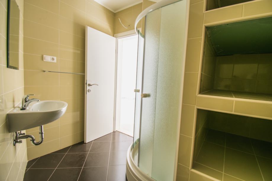 The ground floor consists of kitchen with dining area, and the doors that lead to terrace and garden. Inner staircase lead to first floor that consists of living room, bathroom and toilette, bedroom with the balcony and on the second floor there are two bedrooms, one of them with bathroom.