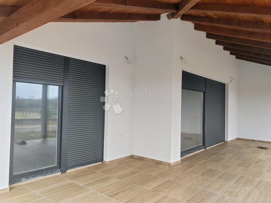 Posebnu pogodnost predstavlja bazen dimenzija 8x3 metra, koji je već upisan u građevinsku dozvolu, dok njegovu izgradnju prepuštamo kupcu, ukoliko se odluči za ovu dodatnu luksuznu opciju. Grijanje je riješeno sustavom dizalice topline, a cijela kuća opremljena je podnim grijanjem.