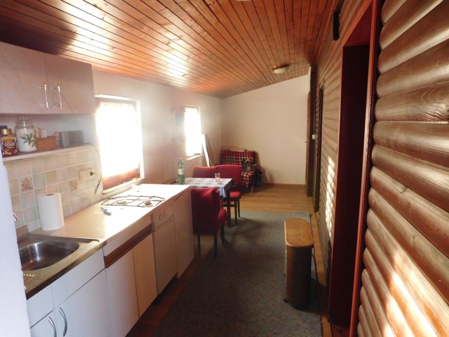 - prizemlja (42,90m2) gdje se nalazi kuhinja, velika blagovaonica - dnevni boravak, kupaonica, manja soba/prostorija i te prekrasna velika natkrivena terasa
