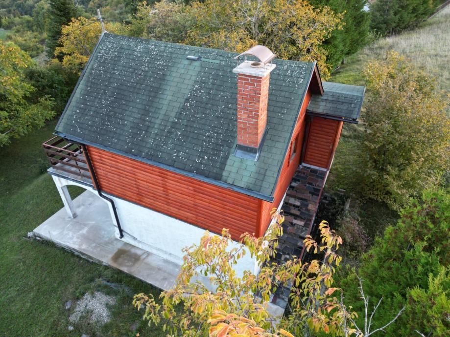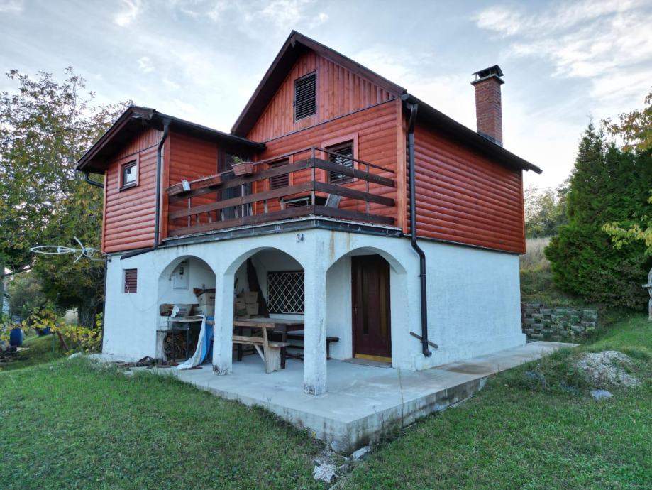 Prodaje se prekrasna kvalitetno građena kuća za odmor 82,33 m2 u Orešje Okičko, 30 minuta od Zagreba sa pripadajućim održavanim dvorištem od 615m2.