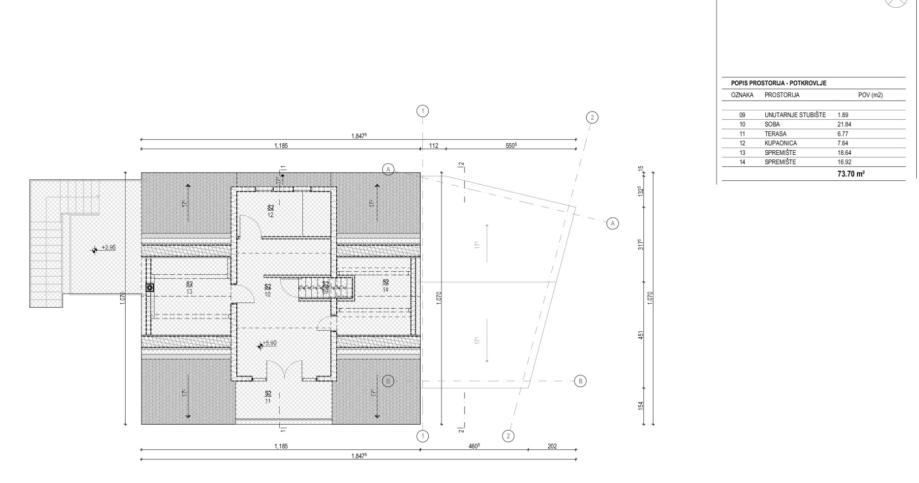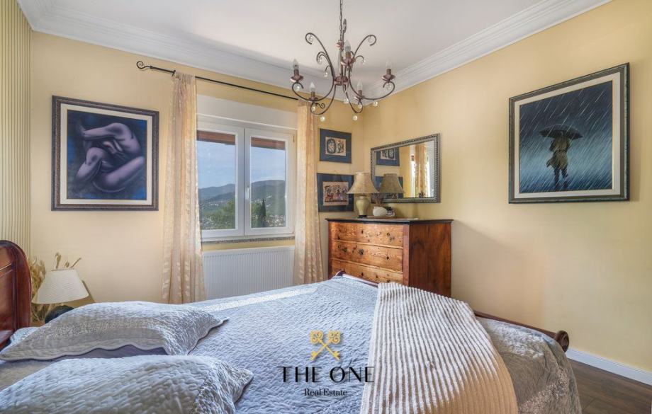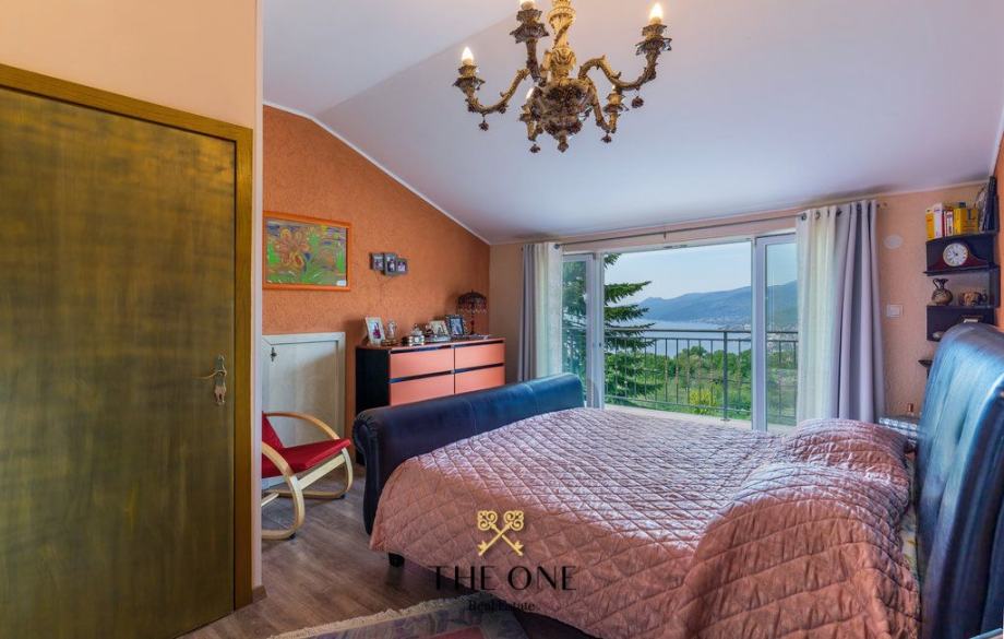 Iz dnevnog boravka stepenice vode u visoko potkrovlje gdje se nalazi spavaća soba s garderobom i kupaonicom te izlazom na balkon sa panoramskim pogledom na more.