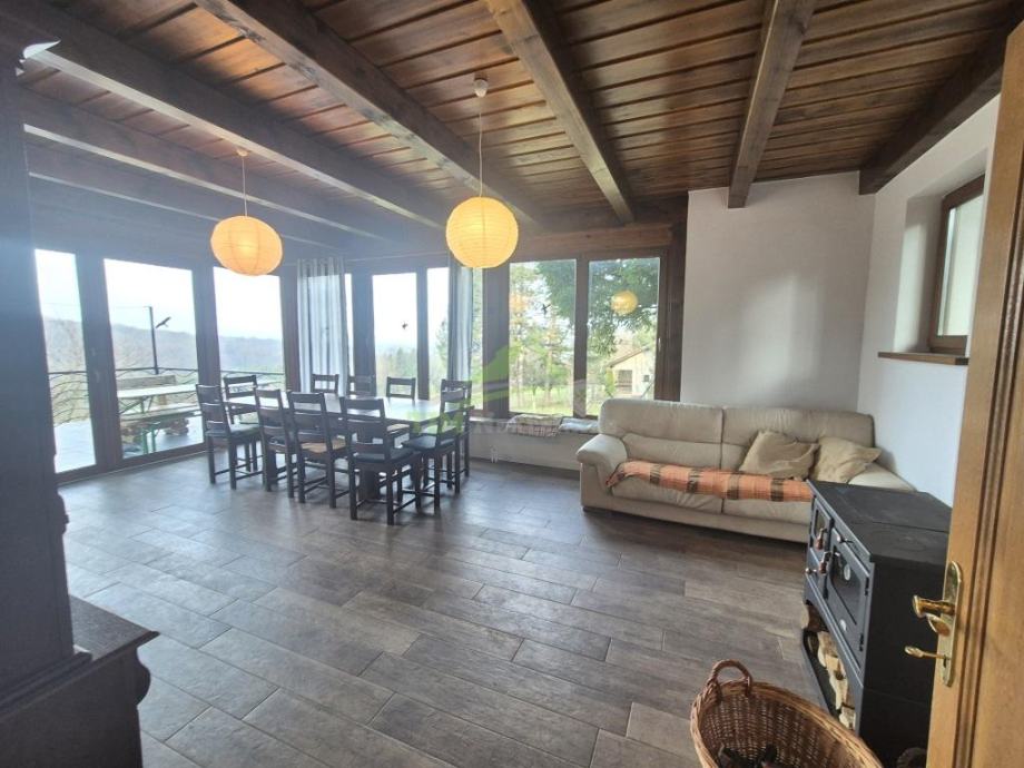 Kuća katnica sa prostranom okućnicom smještena na idealnom mjestu sa prekrasnim pogledom na okolna mjesta te zelenilo kojem je okružena.