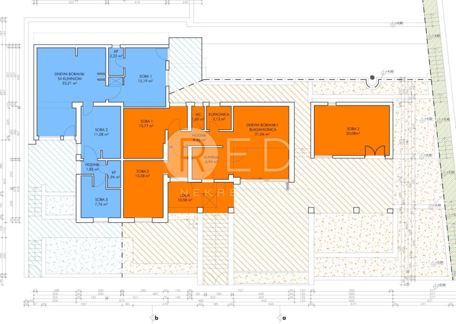 Stan se nalazi u prizemlju stambene zgrade i prostire se na ukupnoj korisnoj površini od 136,59 m2.