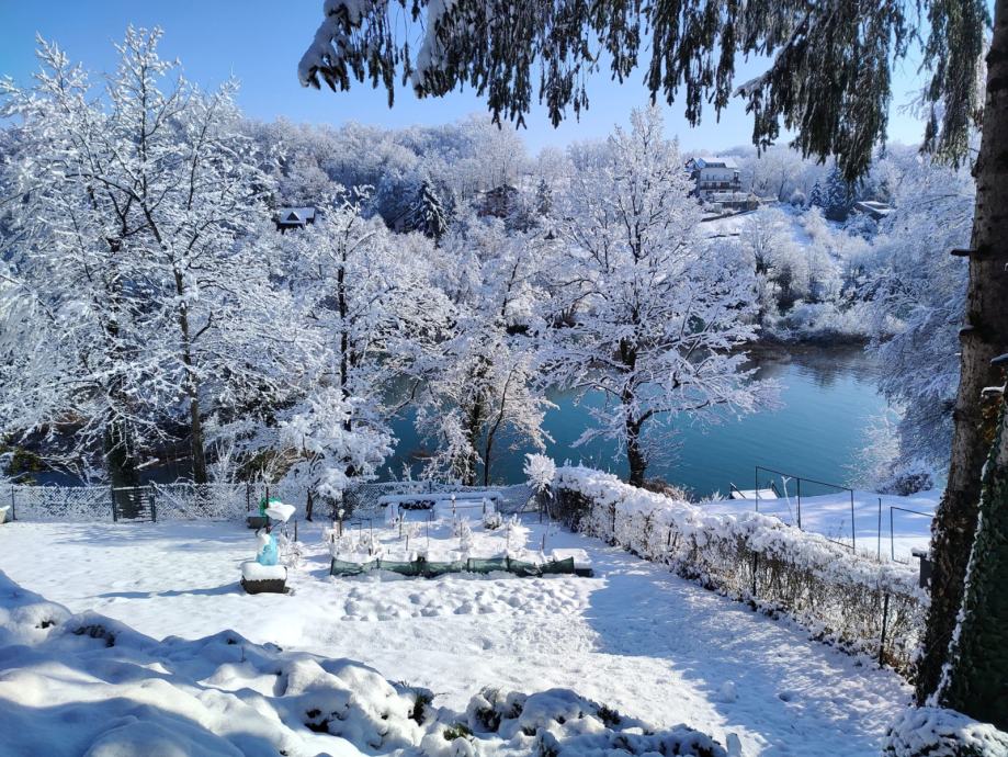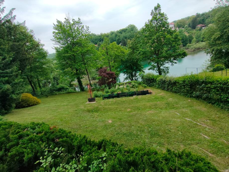 Na 50 minuta od Zagreba u mjestu Zvečaj, na obali kristalno čiste rijeke Mrežnice s pogledom na slapove, smjestila se predivna samostojeća zidana kuća stambene površine 144m2, na kompletno ograđenom zemljištu površine 1100m2. Kuća ima dvije etaže, svaka tlocrtne površine 72m2. Zemljište se proteže do same obale rijeke Mreznice, a kuća je na povišenom terenu te je stoga potpuno sigurna od poplava. Kuća je dijelom ukopana u zemlju te je uz debele zidove savršeno ugodna tijekom ljetnih vrućina i nema potrebe za klima uređajem. Teren od 1100m2 je potpuno ograđen i ima pristup s dvije strane. Iznad kuće je glavni ulaz sa same ceste prema Josipdolu i Senju, zaklonjen visokim gustim tujama, gdje su osigurana četiri parkirna mjesta, od čega jedno natkriveno. S donje strane parcele je izlaz na samu rijeku, drveni mol i kupalište koje godinama dijele i uređuju ukupno tri kuće (vikendaši), stoga je osigurana privatnost i mir. Uz sami mol nalazi se i vez za vlastiti čamac koji također dolazi uz kuću. Na zemljištu se nalaze i voćke (jabuke, kruške, orasi, lješnjak, nar, maline) koje nisu nikada špricane te vam osiguravaju vlastito svježe i zdravo voće. Ispod kuće je uređen potpuno ekološki vrt s povišenim gredicama koji vas može opskrbiti vlastitim povrćem i mediteranskim začinskim biljem (ružmarin, kadulja, lavanda, menta) tijekom cijele sezone.