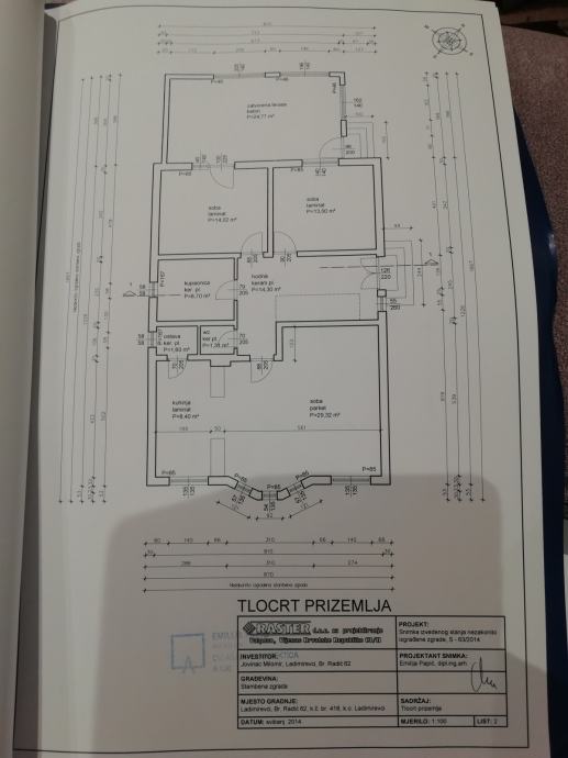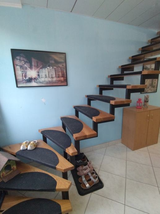 Prizemlje: 136 m² (hodnik, dnevna soba, kuhinja s ostavom, toalet, kupaonica kojoj je potrebna adaptacija, soba, spavaća soba i zatvorena terasa s pogledom na dvorište)