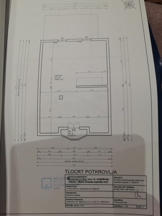 Potkrovlje: 88 m² (trenutno namijenjeno za pohranu stvari)