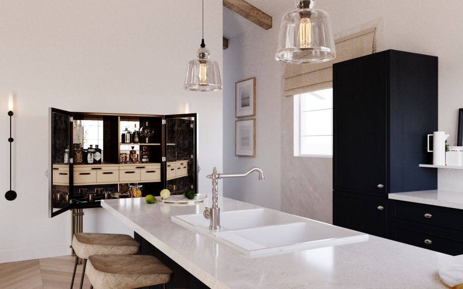 The interior is both elegant and functional, featuring: