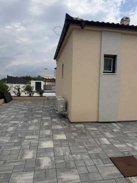 Na južnom dijelu kuće nalazi se privatni prilaz s 4 parkirna mjesta, dok je cijela okućnica uređena s posebnim naglaskom na privatnost i mediteranski ambijent.