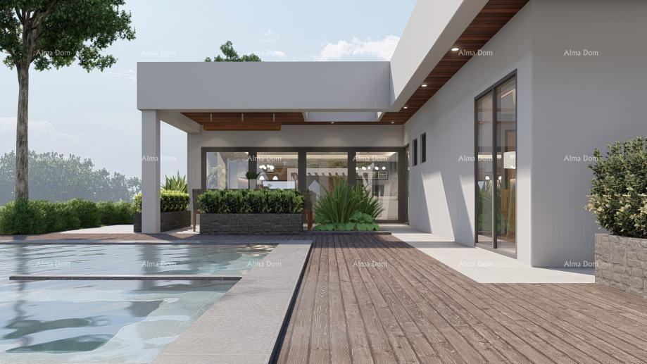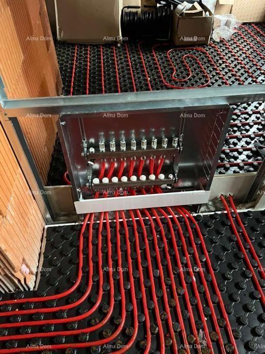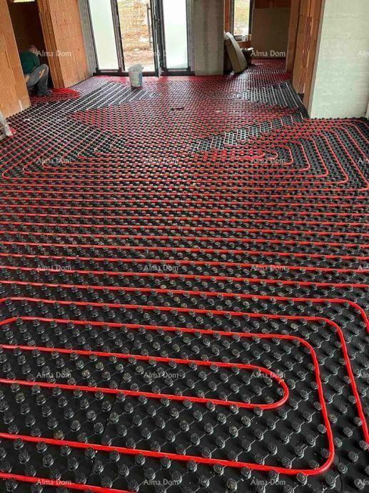 Kuća će biti opremljena toplinskim pumpama, ima podno grijanje. Sva okućnica će biti ograđena kamenom.