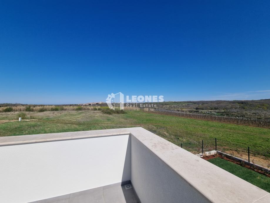 Prodaje se prekrasna moderna vila s grijanim bazenom u okolici Brtonigle. Površina vile je 220 m2 te se prostire se na dvije etaže. U prizemlju se nalazi veliko spremište, praona, spavaća soba, kupatilo, kuhinja s blagovaonom te veliki dnevni boravak. Na katu se nalaze 2 spavaće sobe, svaka sa svojim kupatilom te 2 terase sa kojih se proteže pogled na Brtoniglu i zelenilo. Vila je građena visoko kvalitetnim materijalima te sanitarijama i keramikom prve klase. Površina zemljišta je 1200 m2 te se na njoj nalazi grijani bazen od 48 m2. Bazen ima sistem protustrujnog plivanja. Grijanje je na klima jedinice te kamin. Vila se nalazi u mirnom okruženju te na povišenoj mikrolokaciji.