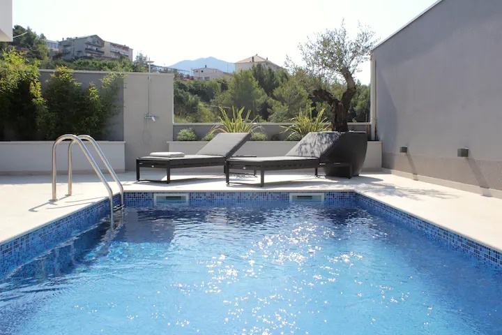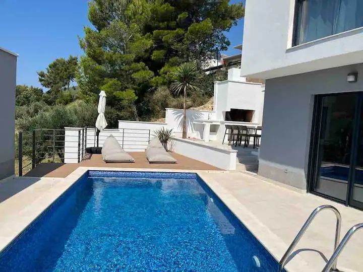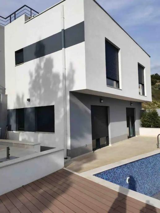 We are renting a brand new modern villa with a pool located in Klis, not far from Split. The villa has 120m2 of living space and 80m2 of yard with swimming pool and additional facilities. It extends over two floors, has three bedrooms, each with its own bathroom on the upper floor, and on the lower floor there is a luxurious kitchen with a dining room and a living room, from which there is access to a beautiful courtyard with a swimming pool and deckchairs, a fireplace for enjoying the outdoors! There is another additional toilet on the lower floor. The house is designed very functionally, modernly, decorated with a lot of style and equipped with all high-quality appliances. There is a parking lot with capacity for several cars... The villa is rented for the period 01.10.2025.-01.06.2026 at a price of €2,000 per month. There is possibility for long term rent too , price is 3000€ monhtly.