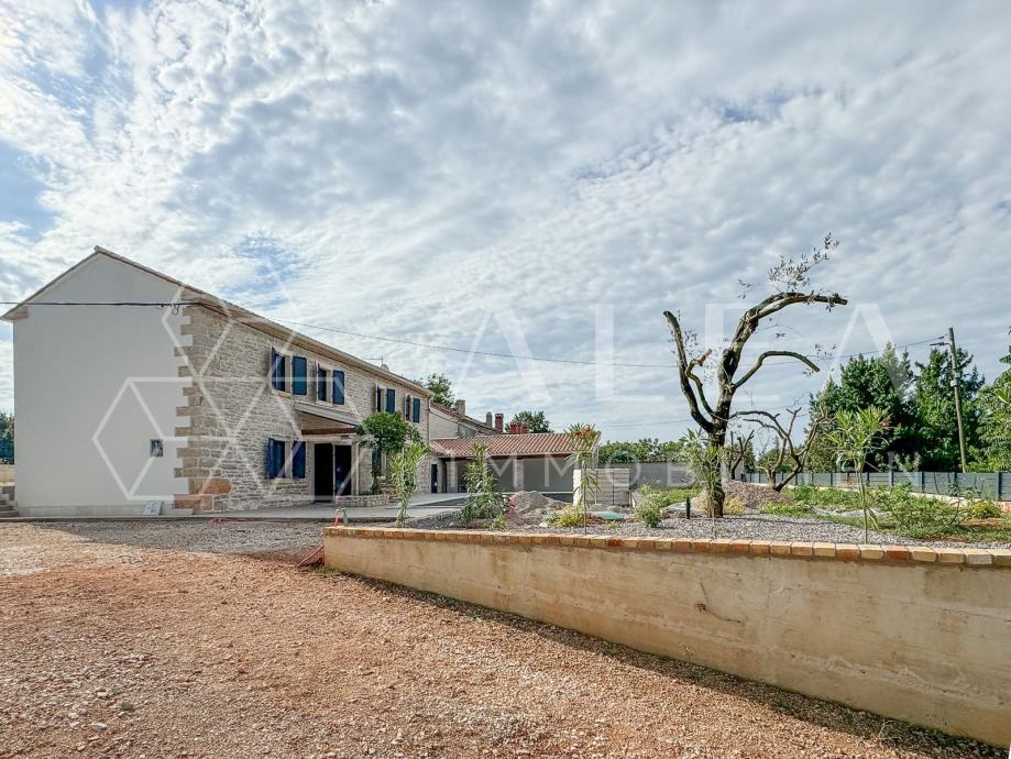 Kamena kuća stambene površine 180m2 proteže se na 2 etaže, a sastoji se od prostranog dnevnog boravka, kuhinje i blagovaone, 4 spavaće sobe i 3 kupatila. Poseban ugođaj daje natkrivena terasa sa vanjskom kuhinjom.