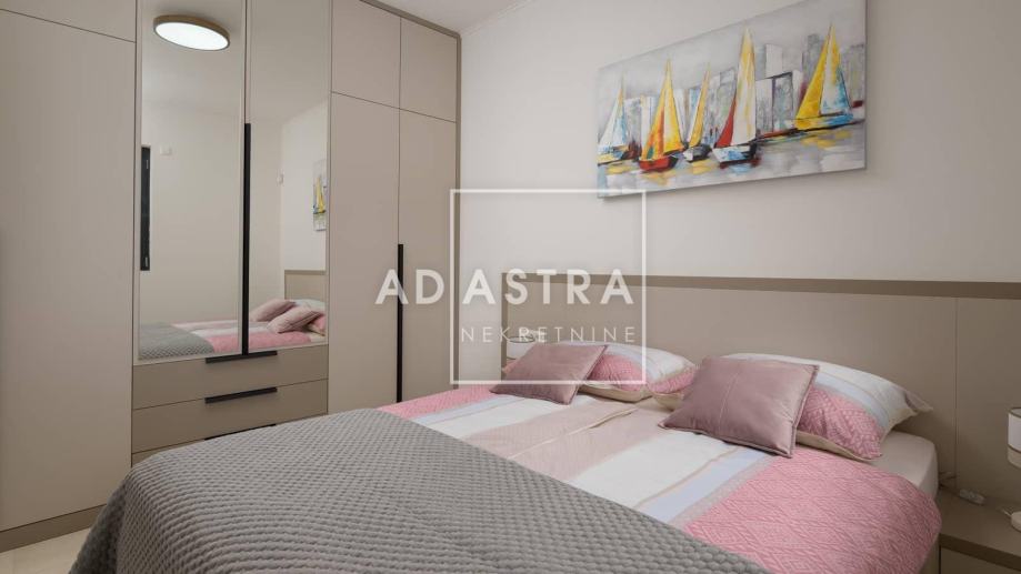 Sastoji se od prostranog dnevnog dijela koji obuhvaća dnevni boravak u komunikaciji s kuhinjom i blagovaonom, tri prostrane spavaće sobe te dva moderno uređena kupatila. Iz dnevnog dijela izlazi se na natkrivenu terasu sa ljetnom kuhinjom i stolom za objedovanje, te na bazen od 30 m2 sa sunčalištem.