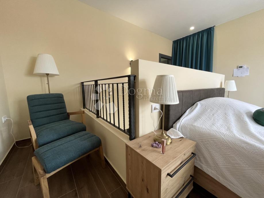 1. kat kuće rezerviran je za master spavaću sobu, s velikom prostranom kupaonicom o kakvoj vjerojatno sanjate, iz sobe se izlazi na terasu s pogledom na more u daljini a koja je idealno mjesto za uživanje u zalasku sunca.
