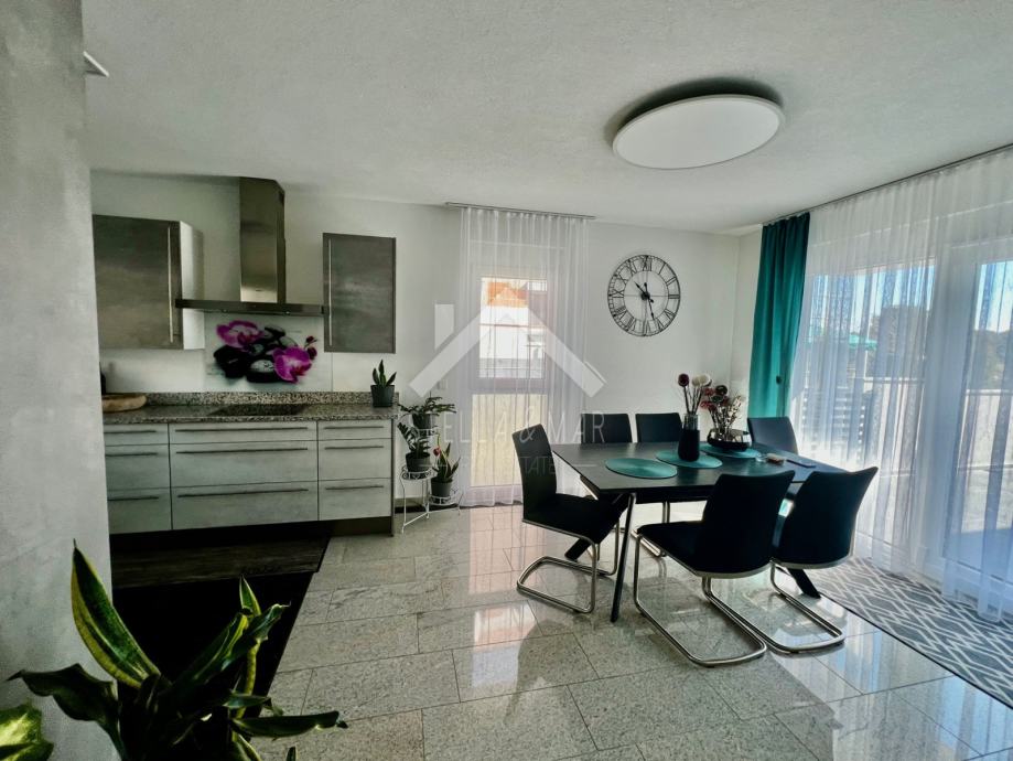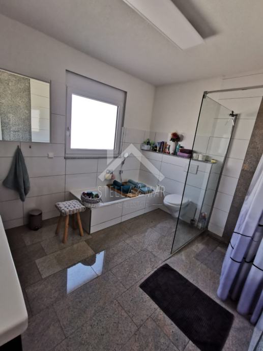 Unutarnje stepenice vode na kat kuće gdje se nalaze tri spavaće sobe, dvije kupaone. Jedna spavaća soba ima vlastitu kupaonu. Također se na katu nalazi terasa površine 28m2.