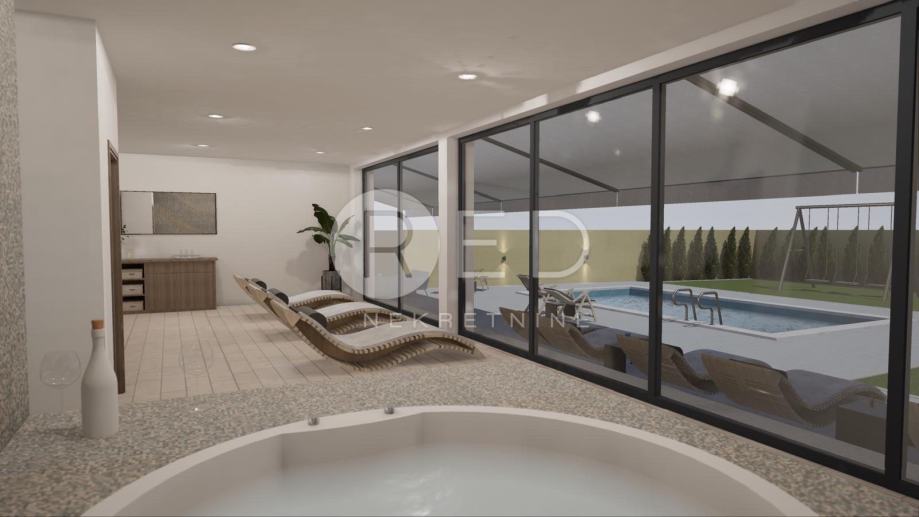 U nastavku kuće je izbetonirana ploča na kojoj je predviđena izgradnja wellnessa (postoji projekt, vizualizacija i građ. dozvola)