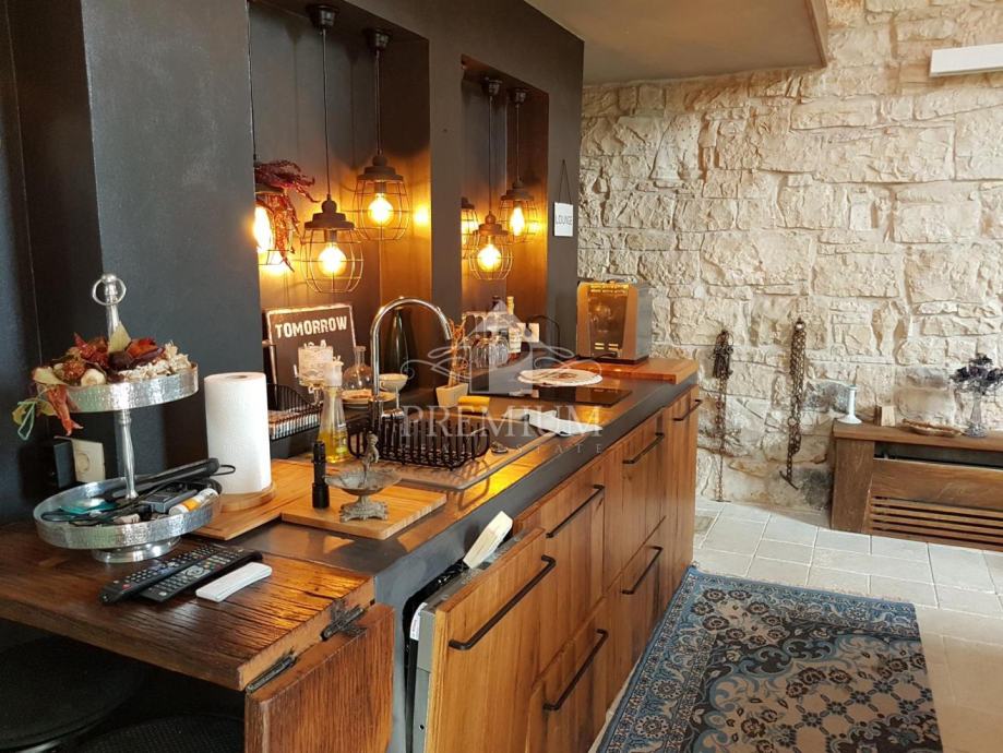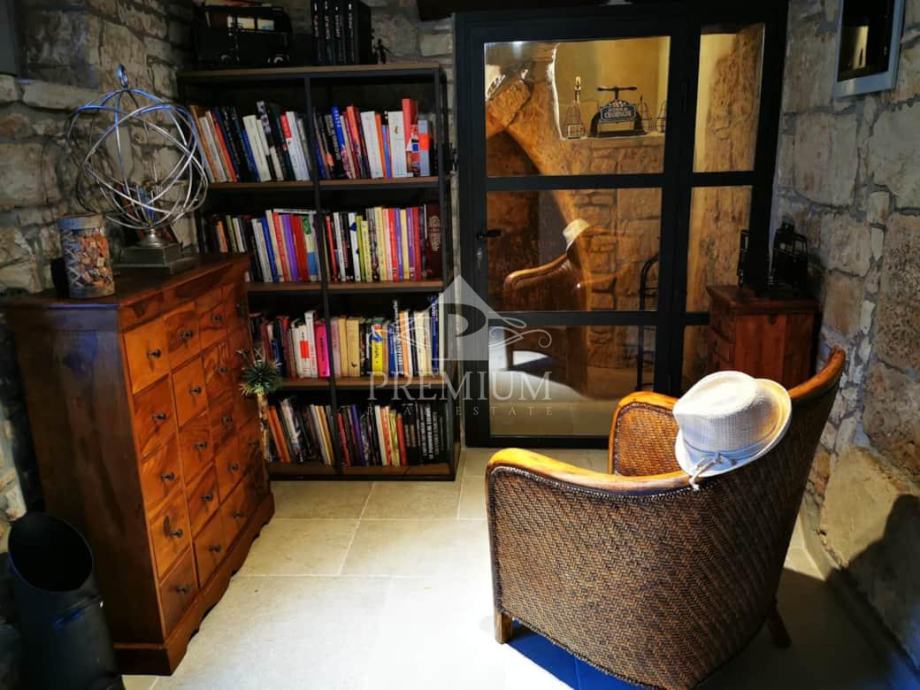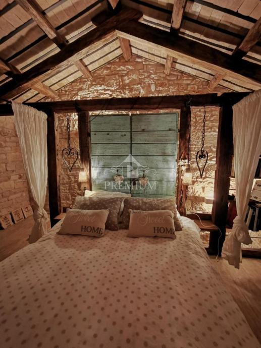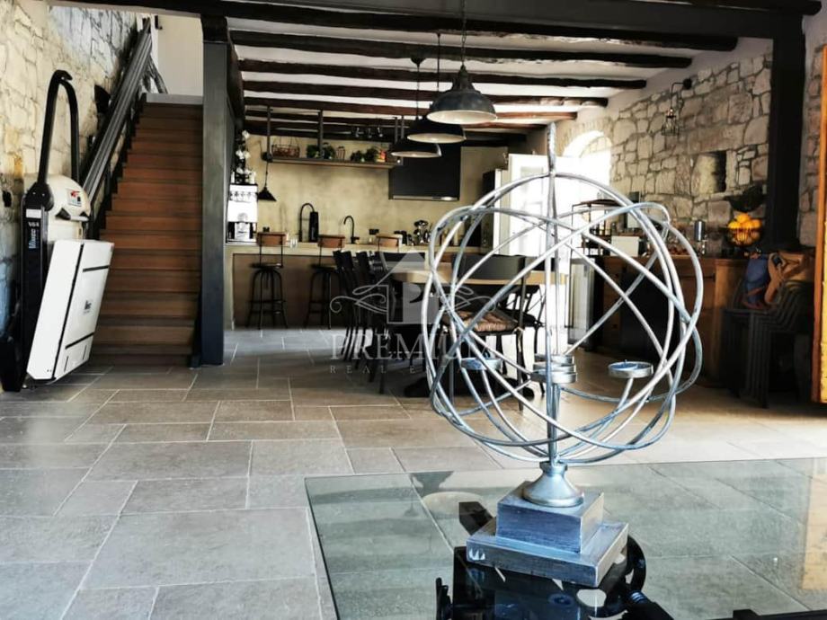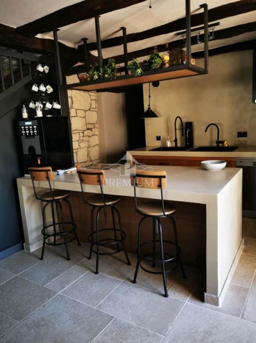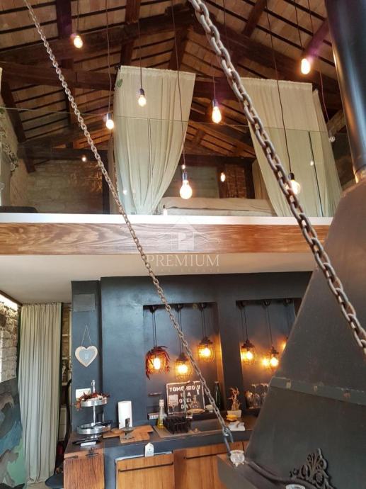 Autentična kamena kuća pretvorena u šarmantnu rustikalnu rezidenciju. Otvoreni koncept visok čak 6 metara bez međukatne konstrukcije stvara dojmljiv i prozračan prostor ispunjen svjetlom i karakterom.