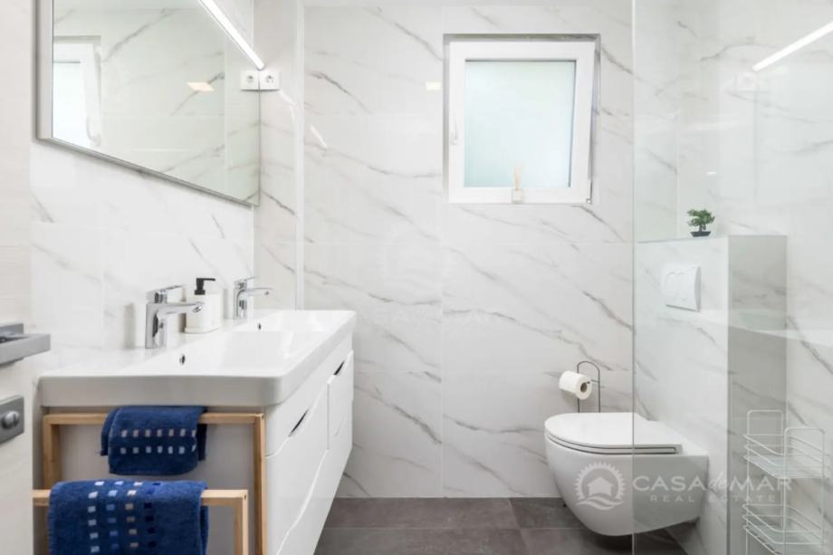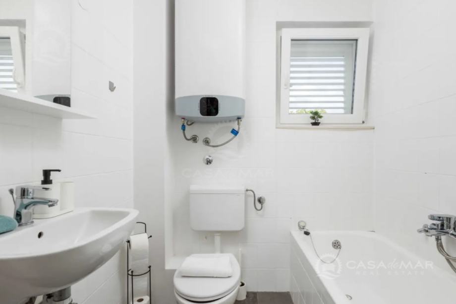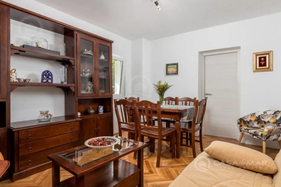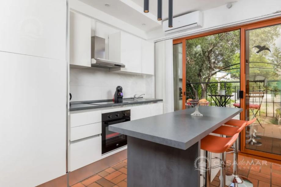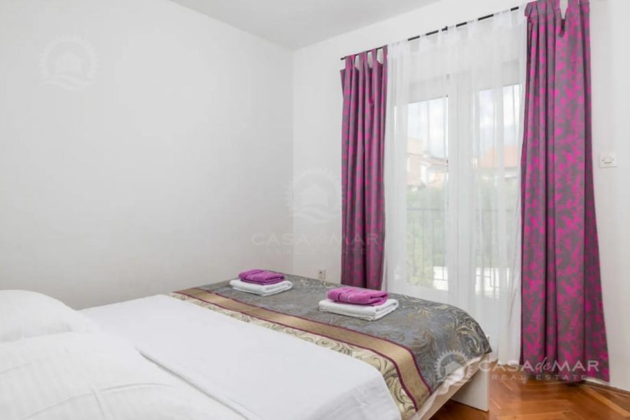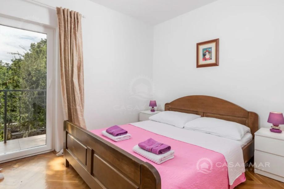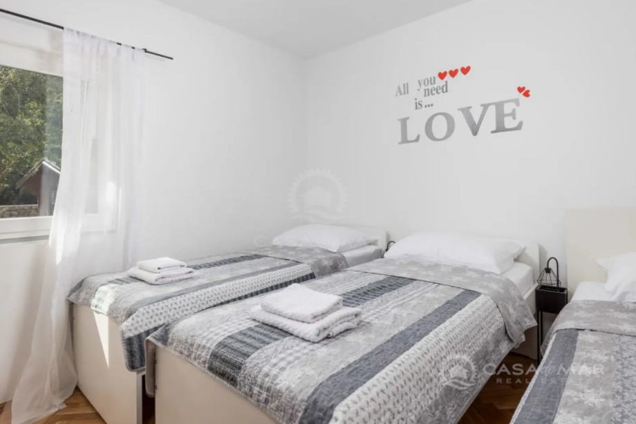 U prizemlju se nalaze dvije spavaće sobe, renovirana kupaonica s podnim grijanjem, dva dnevna boravka, kuhinja s izlazom na balkon i blagovaonica. Na prvom katu nalaze se četiri spavaće sobe, svaka sa svojim izlazom na balkon te jedna kupaonica, dok se u visokom potkrovlju, koje pruža predivan otvoreni pogled na more, smjestile još dvije sobe i kupaonica.