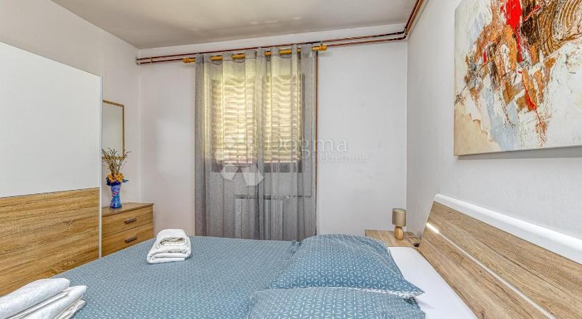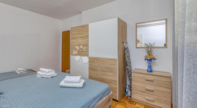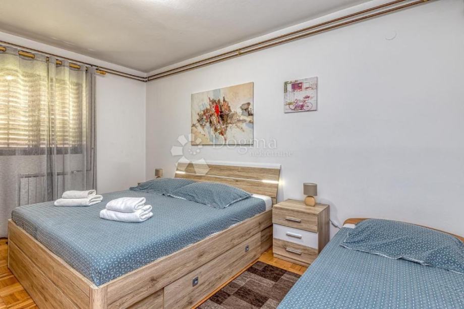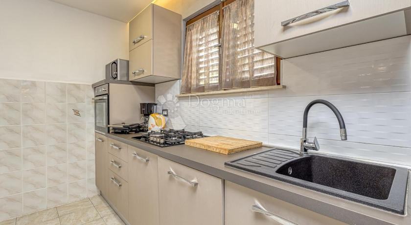 Donji stan: Površine 100 m², s natkrivenom terasom od 33 m². Sastoji se od dvije spavaće sobe, moderne open space kuhinje s blagovaonicom i dnevnim boravkom te kupaonice. Donji stan je trenutno u uspješnoj turističkoj renti, donoseći stabilne prihode.