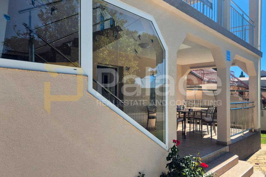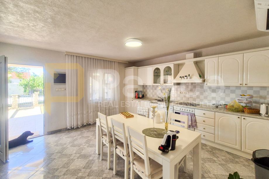 Donji stan i apartmani u potkrovlju su klimatizirani, kuća ima dimnjak pa se može uvesti i sustav grijanja na kruta goriva, termo-izolacijska fasada debljine 8 cm, pvc stolarija s komarnicima, velike ostakljene površine, inox ograda, natkrivene terase, skladno uređen i namješten stambeni prostor, pogled na more i blizina plaže ovu kuću čine jednom od najljepših na ovom području.