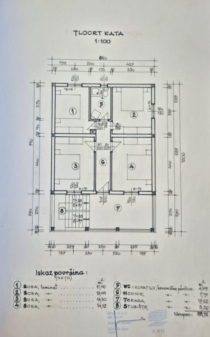 Kuća se sastoji od podruma, na visokom prizemlju je komforan dvosoban stan, na 1.katu su 4 spavaće sobe, hodnik i kupaonica, dok su u potkrovlju 2 lijepo uređena jednosobna apartmana za turistički najam.