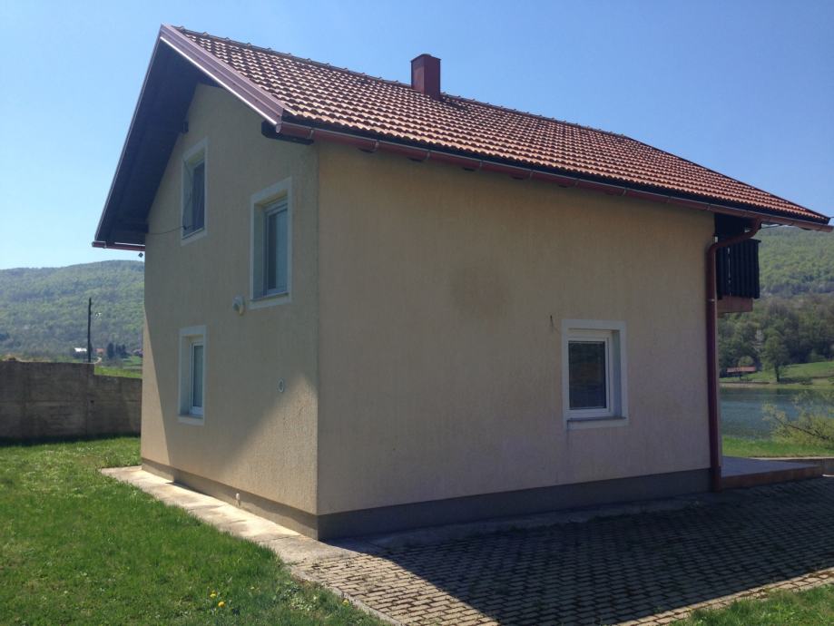 Beautiful freestanding house now available for sale in attractive location on lake Sabljaci near Ogulin city. The property is on two levels with a living area of 90 sqm.The ground floor has entrance hall, kitchen, dining room, living room with exit to a terrace, and toilet . The first floor features a bathroom and 2 bedroms of which one has exit to balcony with fantastic lake view. Bathroom and toilet are completely furnished. Guaranteed high quality of construction works, ownership certificate.