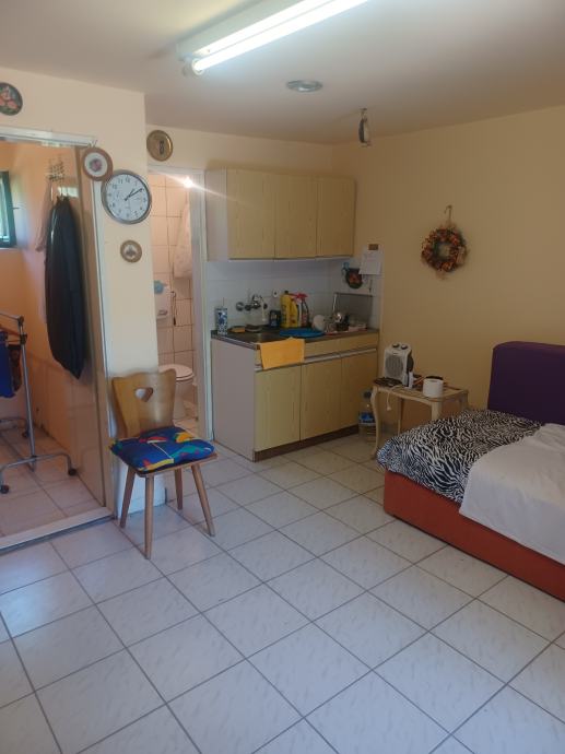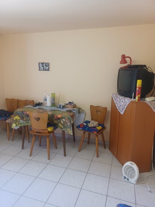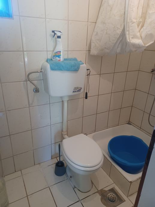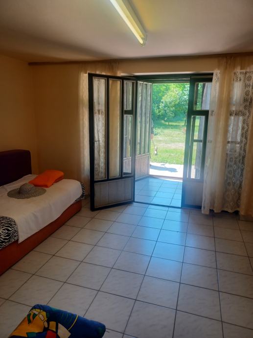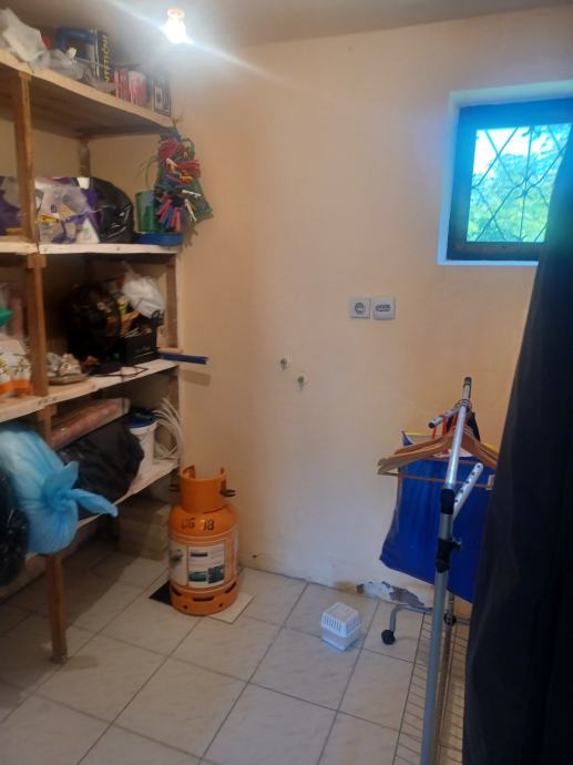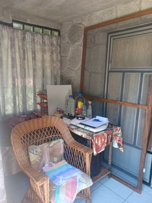Sama kuća je 45m2 prizemlja koja se sastoji iz hodnika koji je zatvoren kao veranda pa može poslužiti i kao zatvorena terasa, kuhinja sa blagovaonom , kupaonica i ostava.