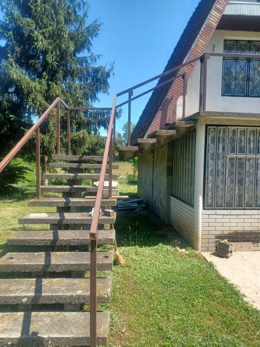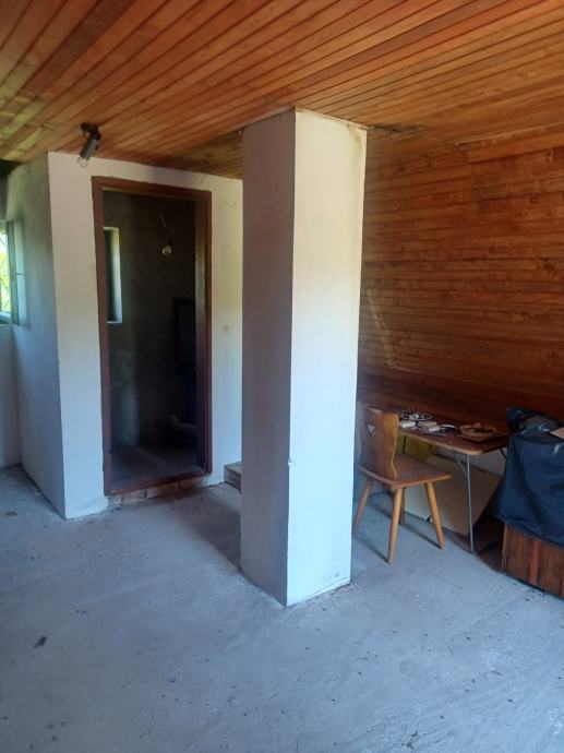 Kat ima prekrasnu terasu kojom se pruža predivan pogled na šumu. Iza kuće se nalazi pomoćna zgrada 49m2 koja služi kao alatnica i pušnica, sama pomoćna zgrada je podijeljena na tri prostorije. Dvorište se proteže na površini od 2429m2, obiluje zelenilom, okruženo šumom.
