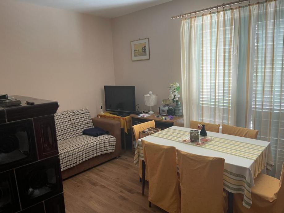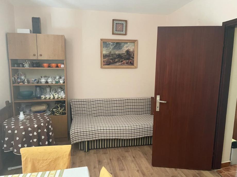 U prizemlju se nalaze 2 spavaće sobe, renovirana kupaonica s tuš kabinom, te dnevni boravak iz kojeg se izlazi na veliku terasu s pogledom na prirodu.