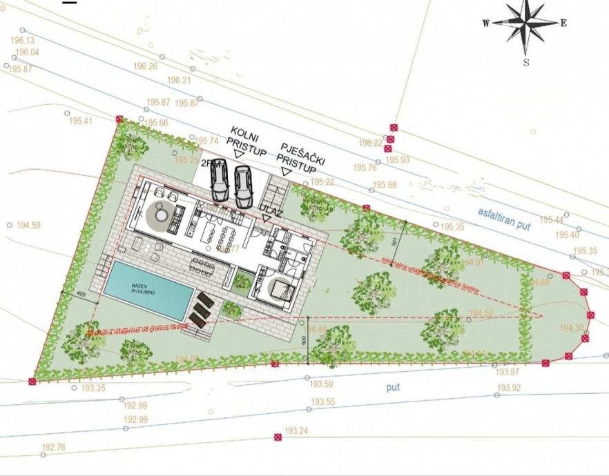 Kuća će imati podno grijanje na toplinsku pumpu, alarm i video nadzor, uređenu okućnicu sa navodnjavanjem te bazen od 34 m2.