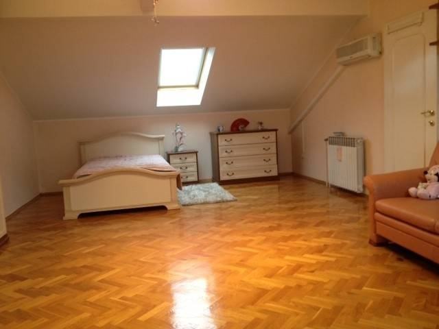 škola, fakulteta, na par minuta šetnje do grada. Prizemlje vile izgrađeno je sredinom 20. stoljeća a nadograđena je u istom stilu 1980. godine. Vila se sastoji od prizemlja, 1. kata te izuzetno visokog potkrovlja (do 4,5 m visine). Prizemlje čini jedan veliki stan od 110 m2, te mala garsonjera od 20 m2, a u stražnjem dijelu je konoba. Prvi kat i visoko potkrovlje uređeni su kao jedan luksuzni dvoetažni stan sa tri terase, velikim dnevnim boravkom, kuhinjom i blagovaonom, dva luksuzna sanitarna čvora, tri prostrane sobe, radnom sobom, ostavom te ostakljenom verandom. Kuća je priključena na struju, vodu, gradski plin i gradsku kanalizaciju. Ima svu potrebnu dokumentaciju i uredno vlasništvo.