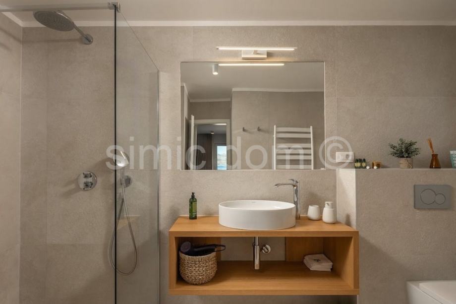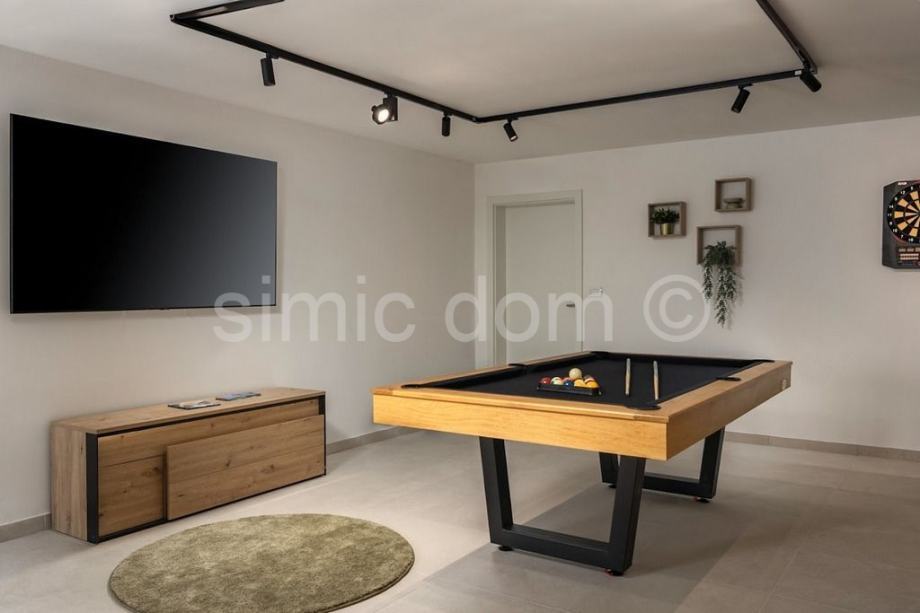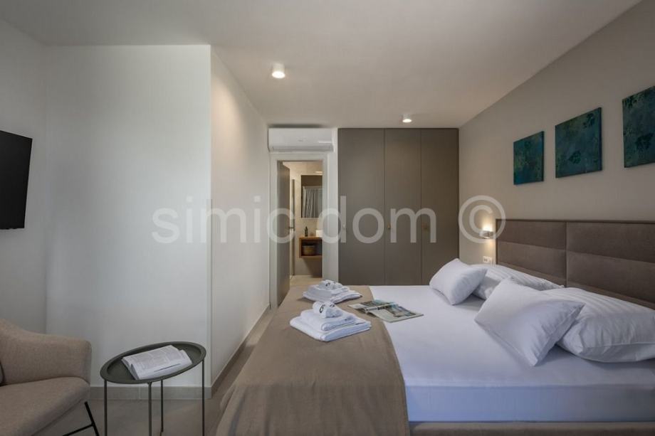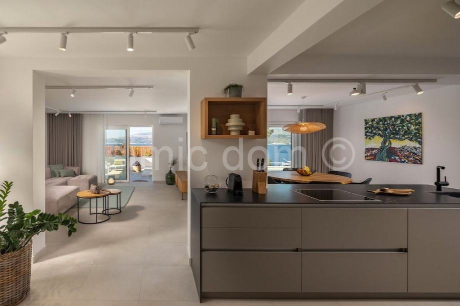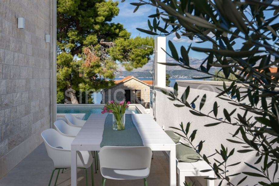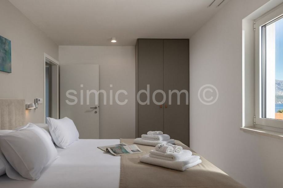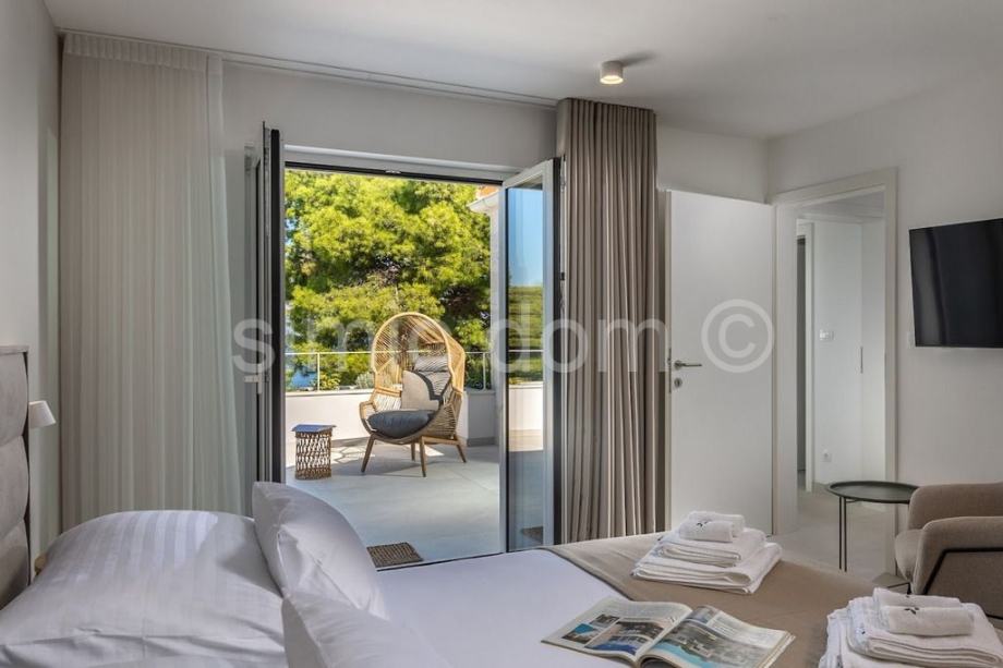 Na prodaju je divna nova vila na otoku Braču, smještena na mirnoj lokaciji, s očaravajućim pogledom na more. Vila površine 150 četvornih metara sastoji se od prizemlja i jednog kata te ima predivno koncipiranu okućnicu, s mnoštvom detalja od bračkog kamena. Položena je na parceli površine366 m2. Etaža prizemlja sastoji se od predprostora, WC-a s praonicom, kupaonice, spreme, ostave, spavaonice, kuhinje te prostranog dnevnog boravka s blagovaonicom. Prvi kat sastoji se od predsoblja te tri spavaće sobe s privatnim kupaonicama. Predivni vanjski prostor kuće sadrži bazen, roštilj, vanjsku blagovaonicu i lounge zonu, kao i parking za dva automobila te dvije divne terase na prvome katu. Vila je izgrađena u dalmatinskom stilu s puno kamena te se kao takva savršeno stapa s divnom borovom šumom u čijoj je neposrednoj blizini.