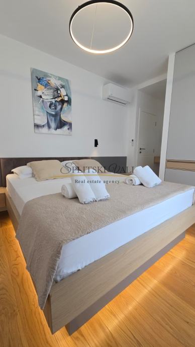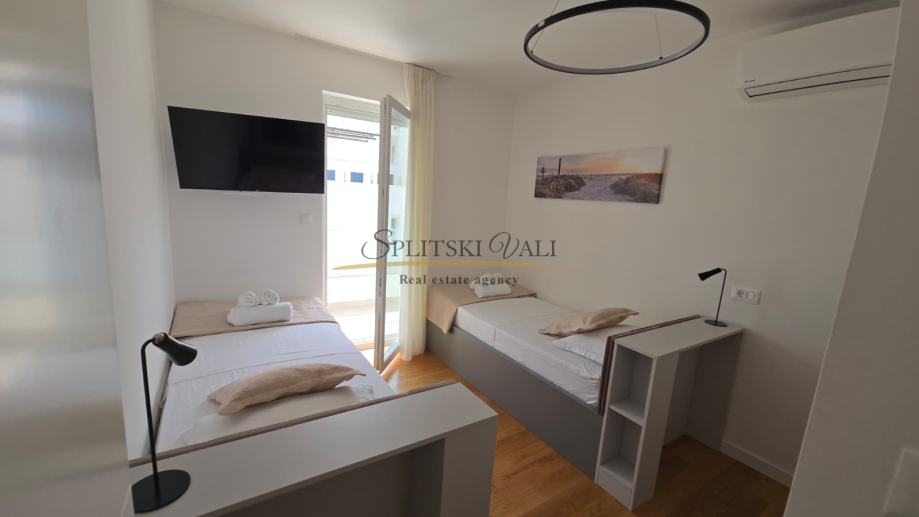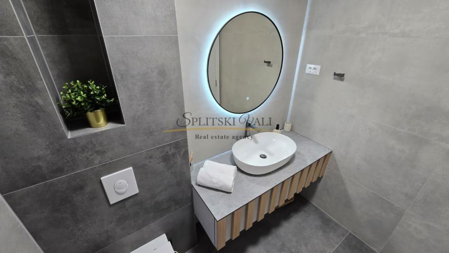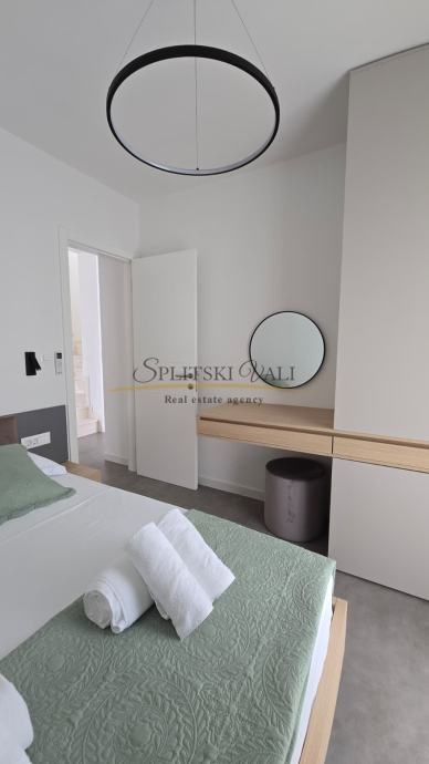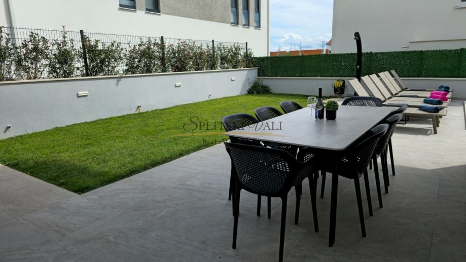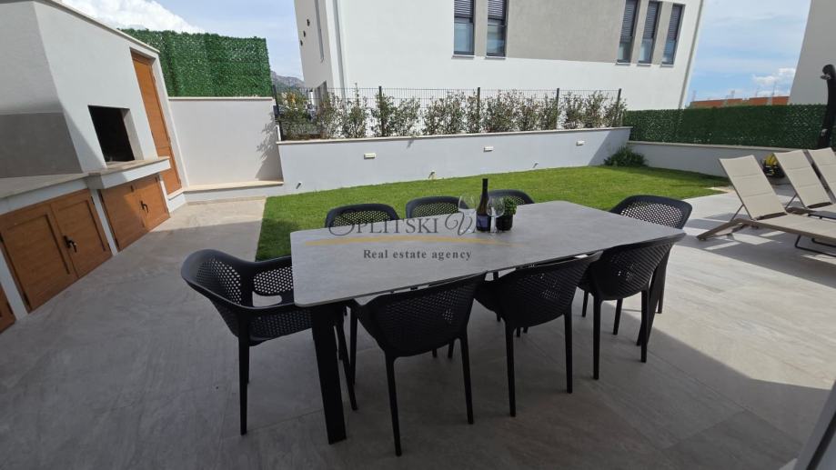 Osim četiri spavaće sobe, ova luksuzna nekretnina se sastoji od kuhinje s blagovaonicom, prostrane dnevne sobe s izlazom na terasu i vrt, 3 kupatila, jednog dodatnog WC-a i ostave. Vrt je opremljen sunčalištem, bazenom, tušem i roštiljem, pružajući savršeno mjesto za opuštanje i druženje.
