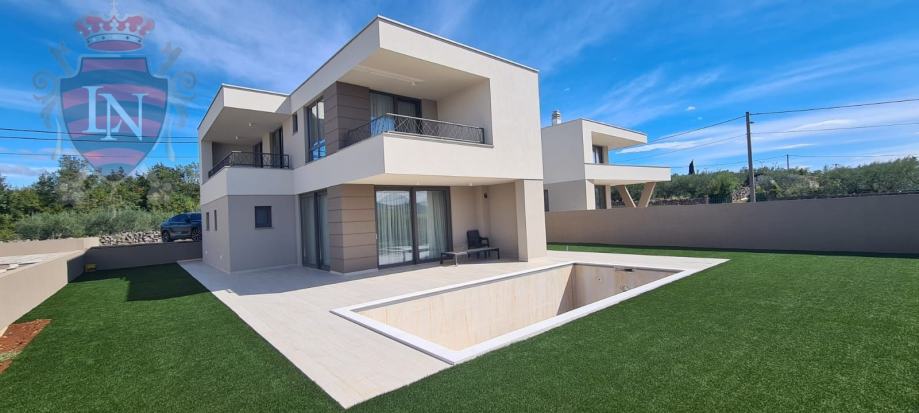 Novosagrađena vila B2 s bazenom smještena na otoku Krku, stambene površine 165 m2 se prodaje. Nalazi se u naselju Brzac.